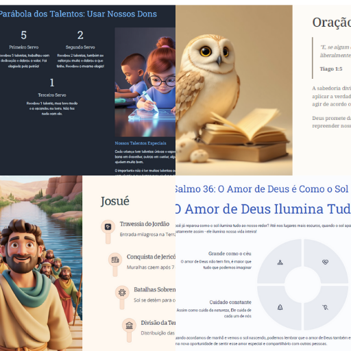 Apresenta algumas das parábolas mais marcantes de Jesus de forma simples e prática. Cada parábola traz uma aplicação devocional para família, relacionamentos e vida espiritual. Um recurso leve para entender melhor os ensinamentos de Cristo.